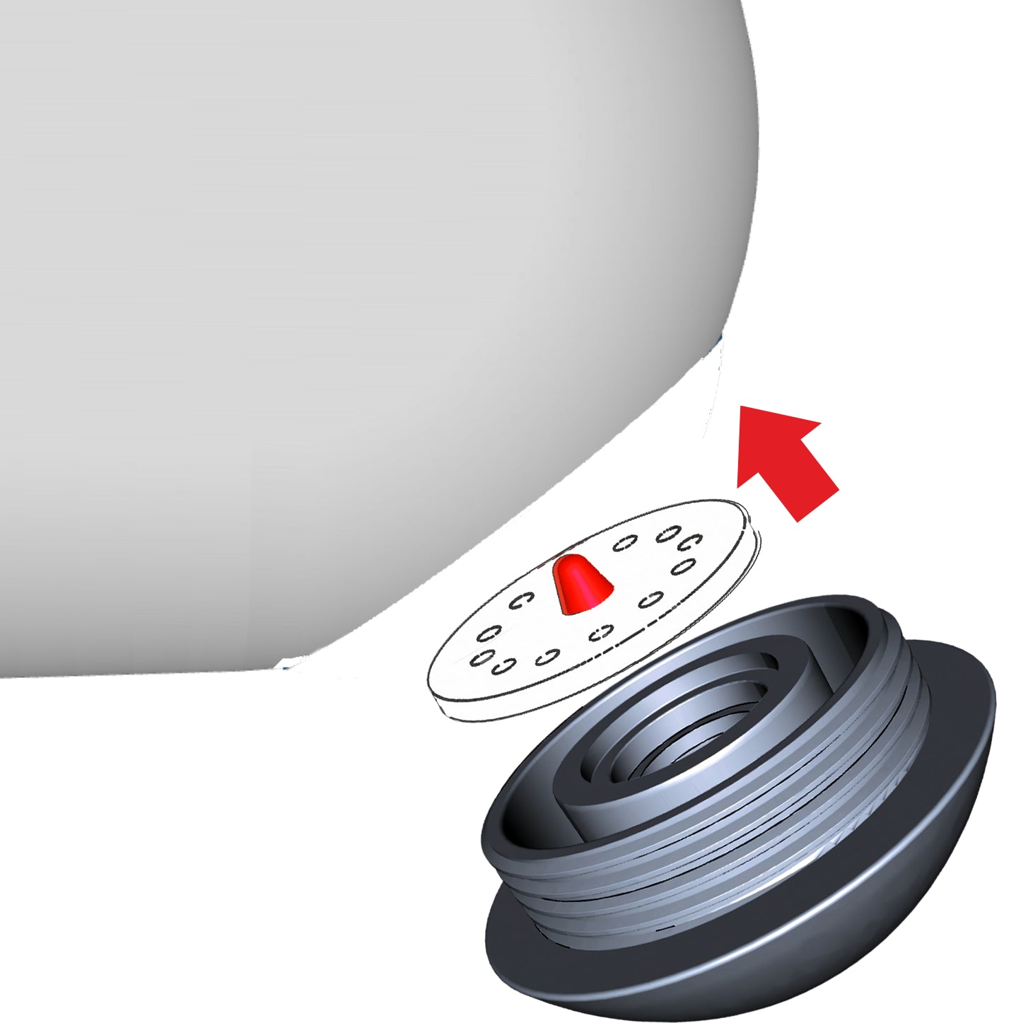 Tipp: Scharfer, dünner Wasserstrahl? Wenden Sie die Lochscheibe in der schwarzen Düse: Kegel (rot im Bild) ins Innere der Brause