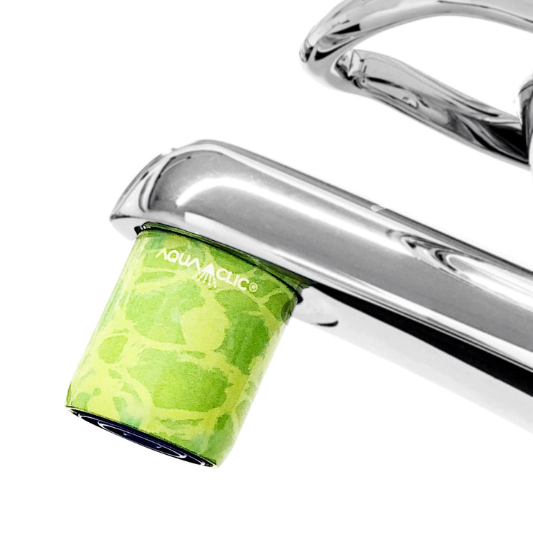 So einfach verbinden Sie Design mit Nach­hal­tig­keit: Bunte AquaClic-Strahlregler ma­chen je­den Wasserhahn zum Hingucker – und re­du­zie­ren Wasser, Energie, CO2, Kosten deut­lich.