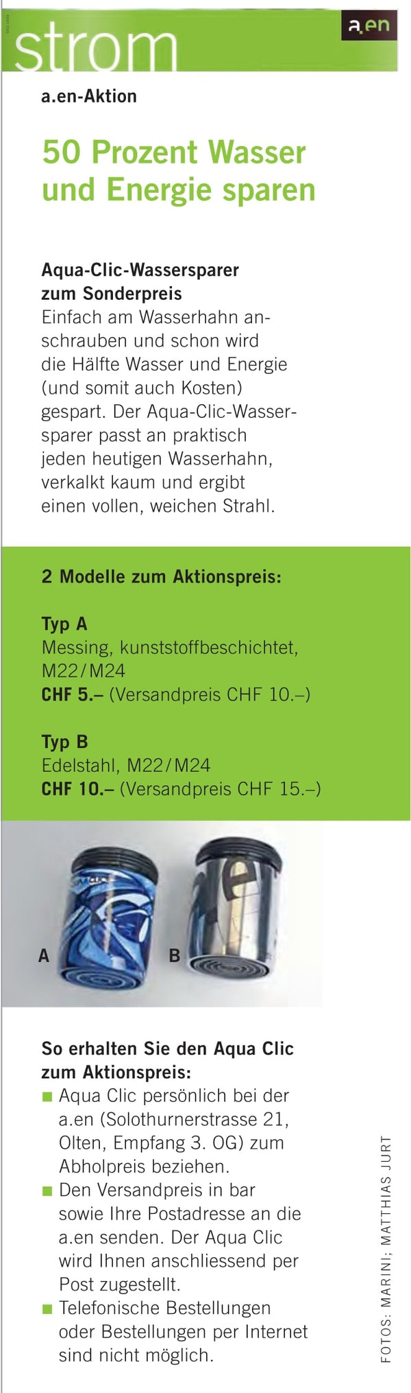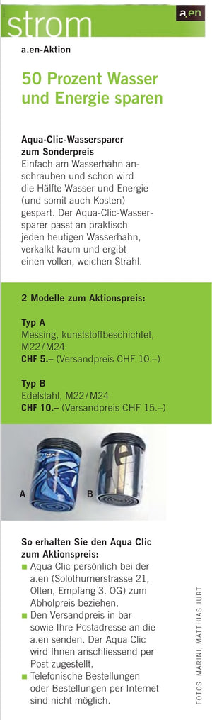 Pressebericht zu einer der Wassersparaktionen von Aare Energie: