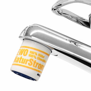 Als Energiestadt war es für uns naheliegend, für unsere Einwohnerinnen und Einwohner einen Strahlregler mit dem Energiestadt-Logo und unserem Gemeindename sowie unserem Leitsatz: VIELFALT LEBEN! anfertigen zu lassen. Wir haben die schlichte Version aus Edelstahl gewählt, damit sie überall gut passt.