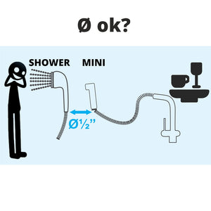 Prüfen Sie den Durchmesser, indem Sie einen normalen Duschkopf vom Duschschlauch abschrauben und vergleichen.