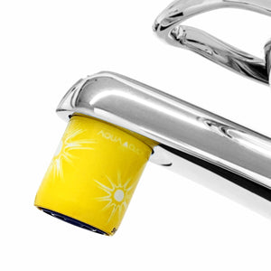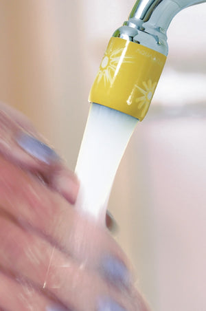 So einfach verbinden Sie Design mit Nach­hal­tig­keit: Bunte AquaClic-Strahlregler ma­chen je­den Wasserhahn zum Hingucker – und re­du­zie­ren Wasser, Energie, CO2, Kosten deut­lich.