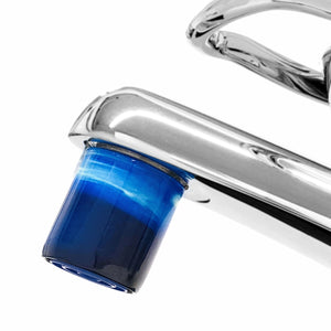 AquaClic Strahlregler Edelstahl und farbig davon einer am Wasserhahn