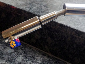 AquaClic Strahlregler Edelstahl und farbig davon einer am Wasserhahn