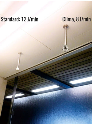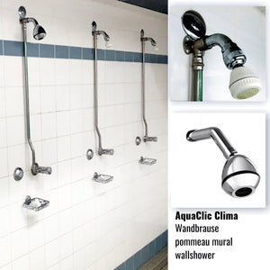 La douchette murale "EcoClima" est une solution pratique et économique pour les douches publiques et le secteur privé, notamment là où des raccordements spécifiques sont nécessaires. Elle est basée sur la douche "SwissClima", qui a fait ses preuves depuis plus de 20 ans et qui est connue pour avoir remporté le test "Kassensturz", et utilise le principe de turbulence pour une utilisation efficace de l'eau.