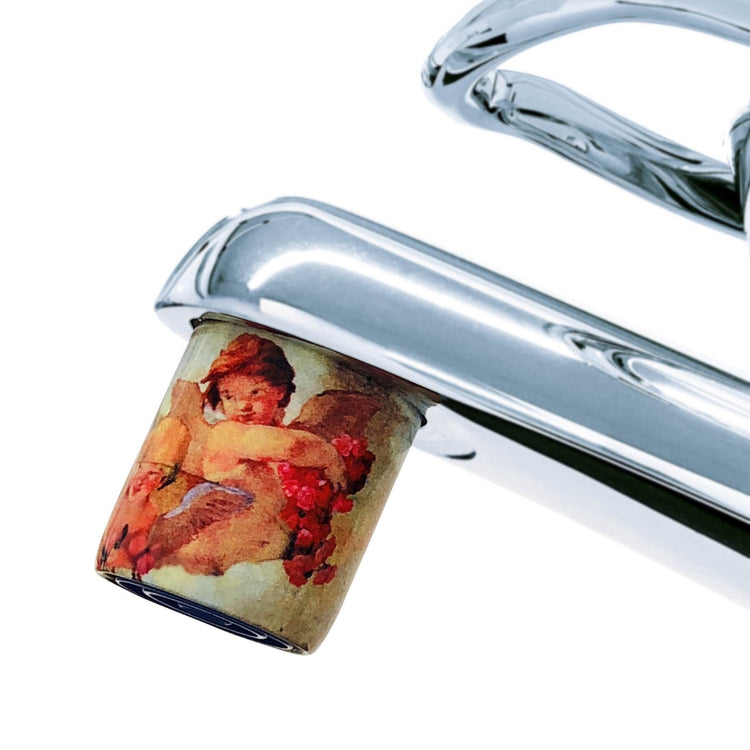 Aéra­teurs AquaClic en inox et en couleur, dont un monté sur un ro­bi­net