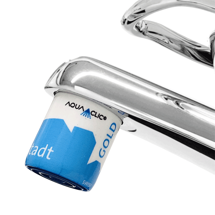 • Équipement de tous ses propres robinets et douches avec des AquaClic Cité de l'énergie Or Küsnacht personnalisés :