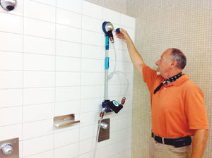 Nach intensiven Tests der Wandbrausen Publique, die uns die Firma kosenfrei zum Testen zur Verfügung stellte machten wir eine erste Teil-Installation. Nun folgte eine zweite Installation, bei der wir von Sonderkonditionen profitierten für die Montage durch den Hersteller selber. Wir waren beeindruckt, wie schnell diese vonstatten ging. Es ist beruhigend zu wissen, dass die Duschköpfe perfekt auf unsere individuellen baulichen Gegebenheiten eingestellt sind – sei es in Bezug auf die Höhe oder den Winkel. Ausserdem hat der Monteur anhand elektronischer Messung die minimale Literleistung ermittelt, sodass niemand bemerkt, dass Wasser gespart wird. Und, wie wir erfuhren, ist der Hersteller auch zufrieden zu wissen, dass seine Produkte richtig montiert sind – anscheinend sei dies nicht immer der Fall, wenn er bei Routinekontrollen auf ungenügende Montagen trifft),