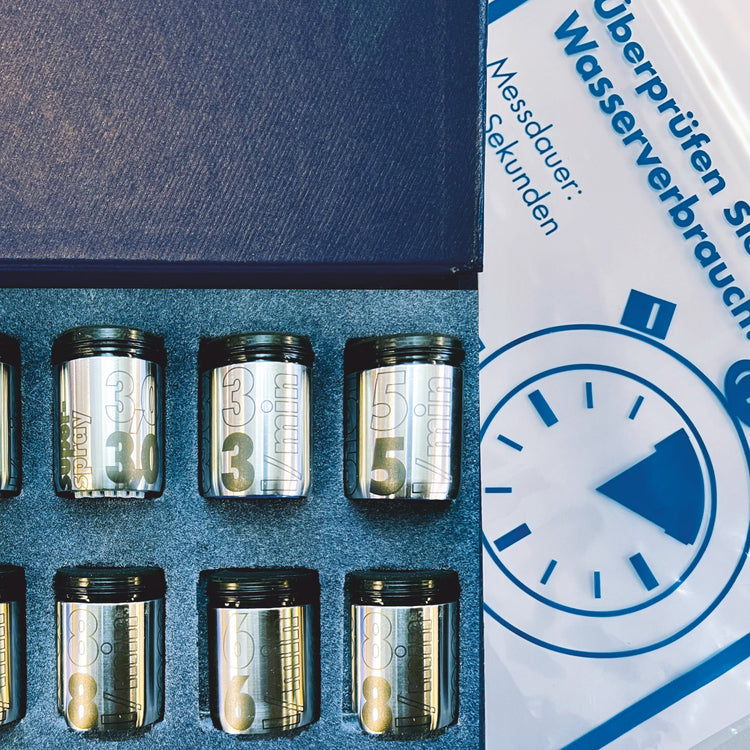 Coffret contenant divers AquaClics avec différents débits en litres et types de jets.