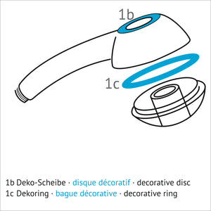 Le disque décoratif(1b dans l'image ci-dessous)ne peut pas être remplacé, veuillez choisir le pommeau de douche SwissClima avec la couleur souhaitée du disque décoratif.