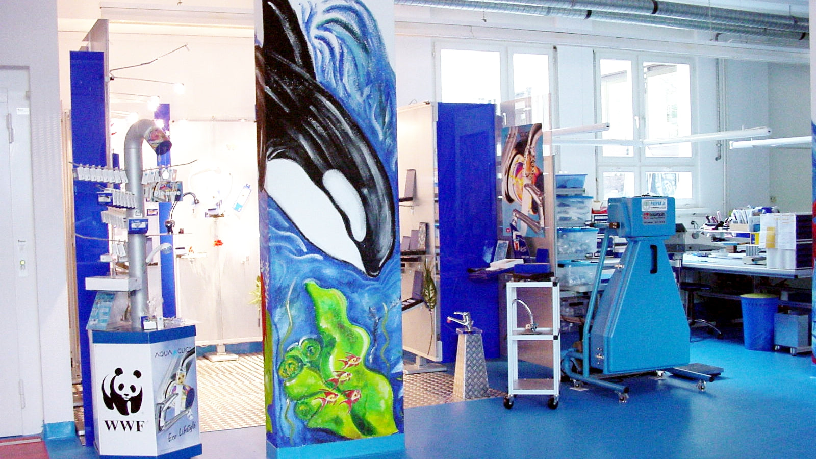 Après de nombreuses expériences et de nombreux échecs dans la cuisine et dans l'atelier du voisin, nous avons réussi à mettre au point les futurs AquaClics : D'un aspect et d'un toucher brillants, d'une capacité idéale en litres, adaptés au contact alimentaire et au lave-vaisselle et d'une qualité durable.